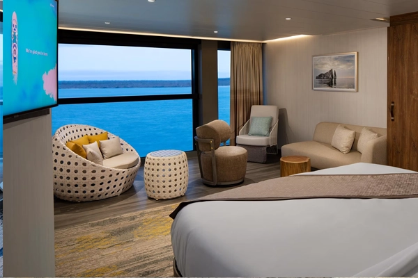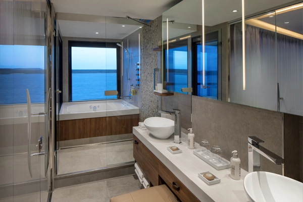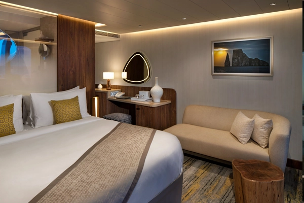 The largest, most luxurious suites sailing the Galapagos islands. With up to 1,288 total square feet of indulgent home-away-from-home comfort, these lush havens are the ultimate complement to this extraordinary destination.