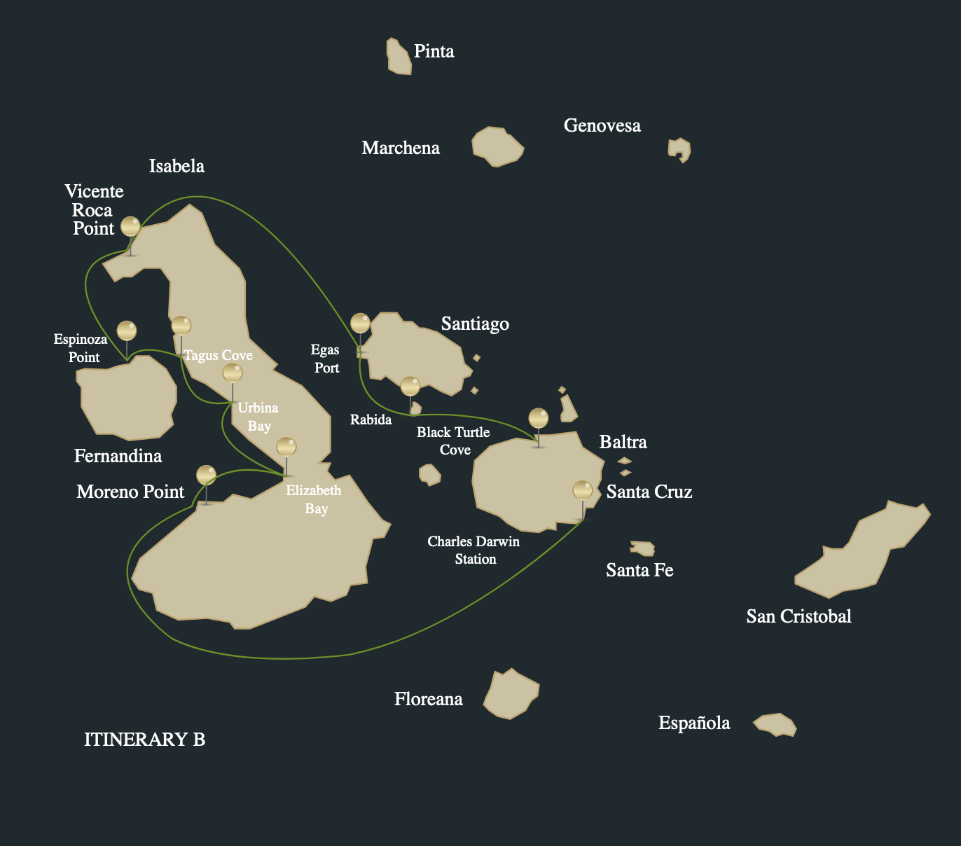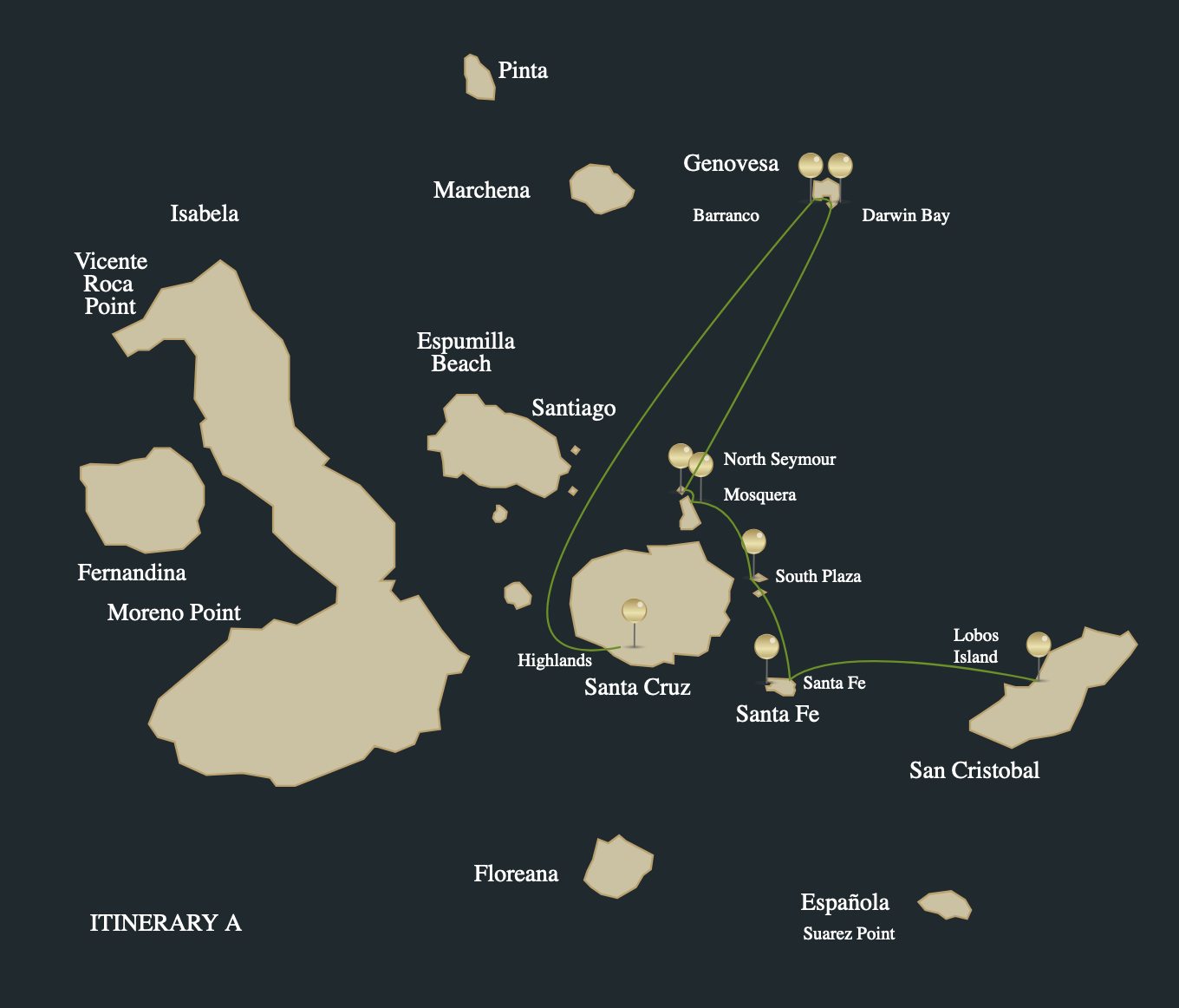 There are three award-winning itineraries offered on the EcoGalaxy for its Galapagos cruises.