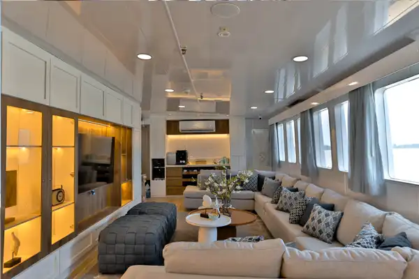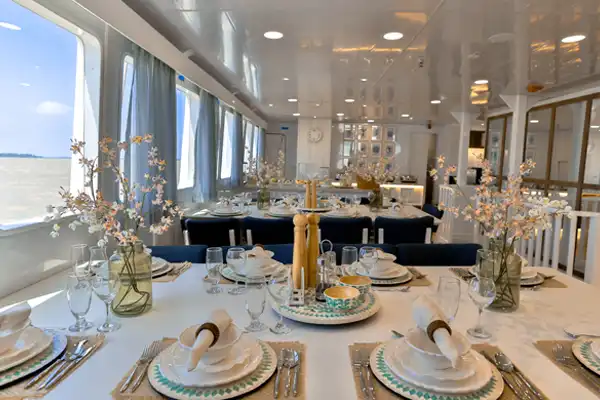 Our professional cuisine specialists aboard the Galaxy Diver II prepare three delicious, nutritious meals per day: breakfast and lunch are served buffet-style, with a more elegant sit-down dinner served in the al fresco dining area on the partially covered sky deck. Special dietary needs are never a problem and kids’ meals are available, including kosher food (barters). Guests of all ages enjoy the spacious, semi-covered sky deck, the al fresco dining area, and the cozy bar-salon while aboard the Elite, and its interior passenger lounge features a 180-degree panoramic view from its main deck.