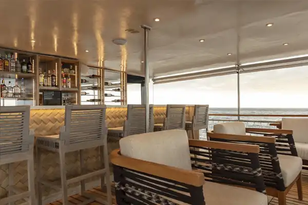 Book a Galapagos cruise on this yacht and enjoy the huge variety of Grace Onboard Services. We offer the most fantastic food and beverage services, including a great choice of places to sit and drink. On top of this, there are lots of deck areas to exercise or relax.