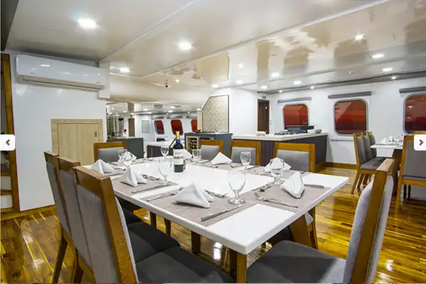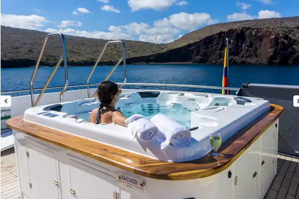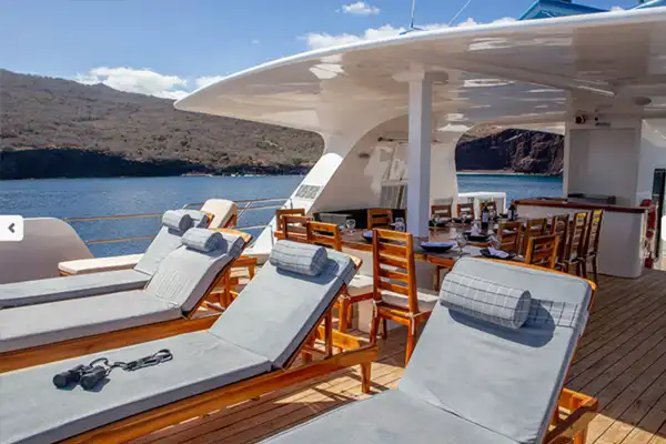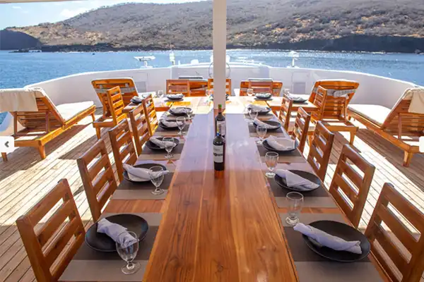 Book a Galapagos cruise and enjoy the huge variety of Natural Paradise Onboard Services. We offer the most fantastic food and beverage services, including a great choice of places to sit and drink. On top of this, there are lots of deck areas to exercise or relax.