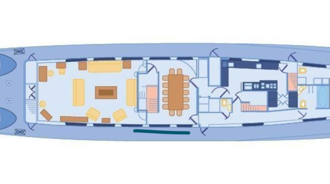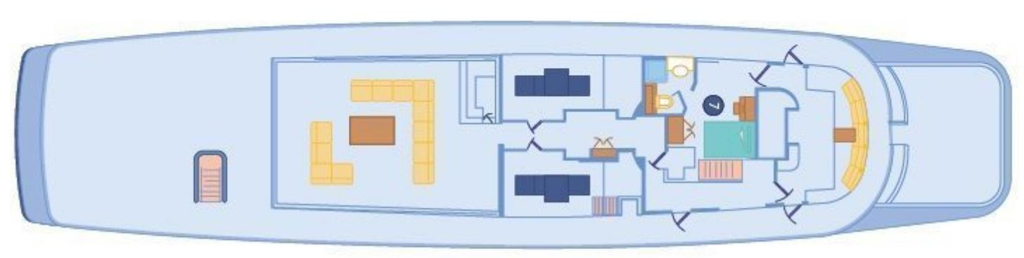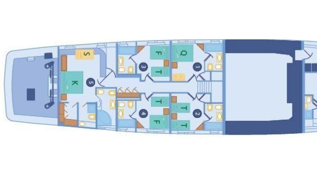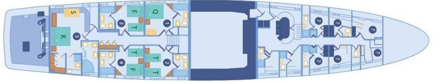 Passion sleeps 12 guests in her 6 cabins. All cabins have their own private bathroom complete with toiletries, air conditioning and a large viewing window.