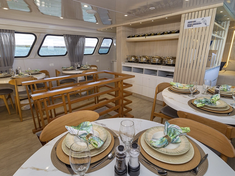 Comfortable space for diverse interaction with your fellow travelers on board. A perfect place to rest after a day of adventure.